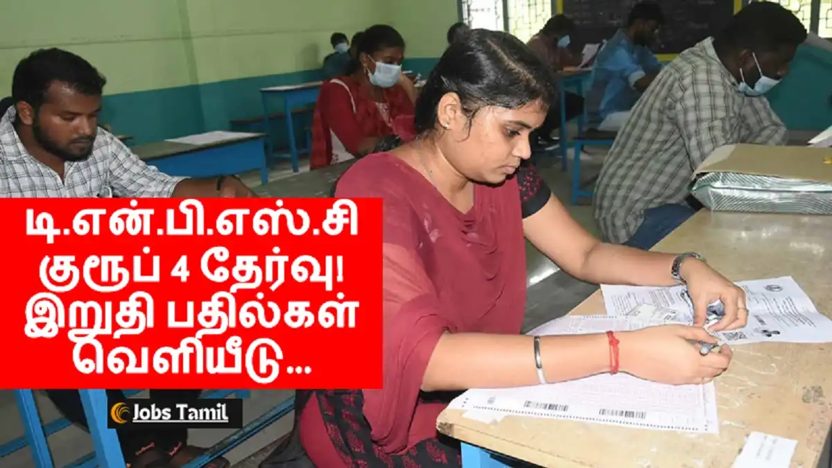 டி.என்.பி.எஸ்.சி குரூப் 4 தேர்வு! இறுதி பதில்கள் வெளியீடு… 2 குரூப் 4 தேர்வானது 2022 ஜுலை 24 ல் நடந்தது. அதன் முடிவுகளும் வெளியானது. இந்நிலையில் குரூப் 4 தேர்வின் இறுதி கீ …