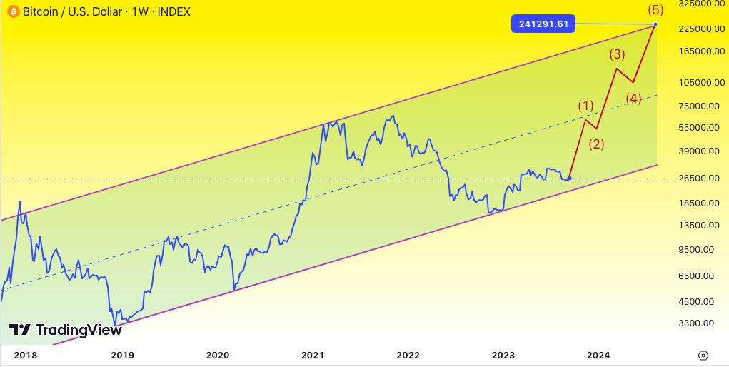 முந்தைய சுழற்சிகளில் இருந்து பிட்காயின் பிரதிபலிக்கும் நடத்தையுடன், எலியட் வேவ் தரவரிசையின் மரியாதையால், எல்லா நேர உயர் மற்றும் பாதிக்கு பிந்தைய $250,000 இலக்கு வந்தது.
