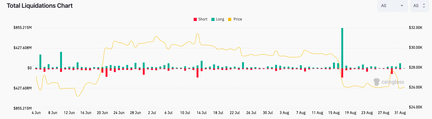 இதற்கிடையில் CoinGlass இலிருந்து தரவு காட்டியது ஆகஸ்ட் 31 பிட்காயினின் 10% டைவ் மாதத்திற்குப் பிறகு BTC நீண்ட கலைப்புகளின் மிகப்பெரிய அளவைத் தூண்டியது.