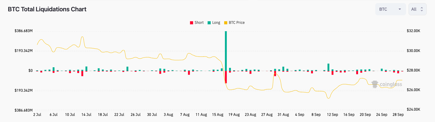 முந்தைய நாள் $27,000 ஐ கடந்த ஒரு பயணத்தை வழங்கியது, இருப்பினும் பிட்காயின் காளைகளால் செப்டம்பர் மாதத்திற்கான புதிய உச்சத்தை அடைக்க முடியவில்லை.