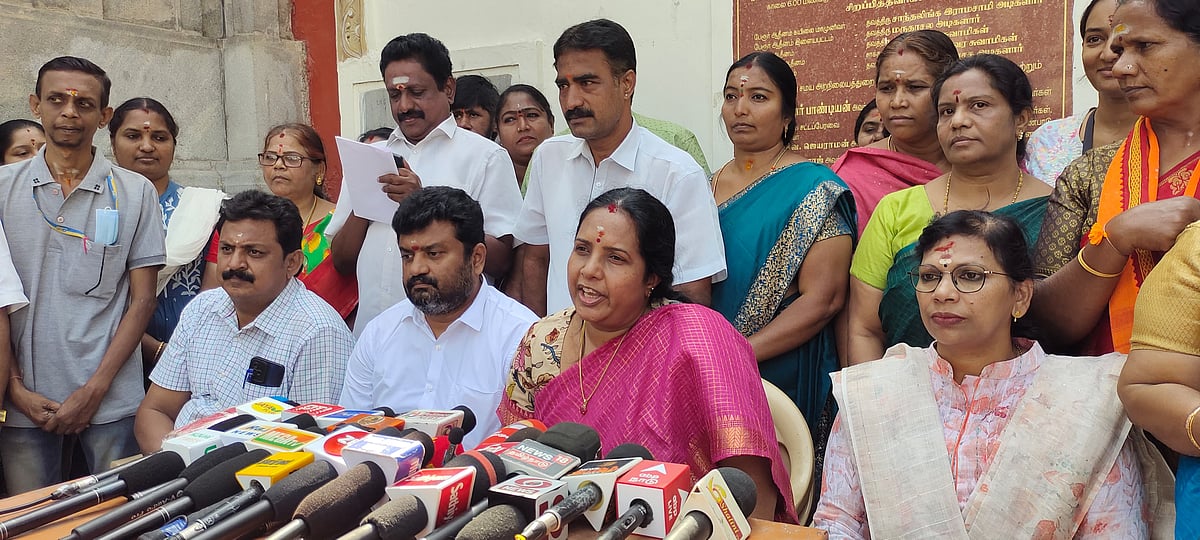 தமிழ்நாடு முதலமைச்சர் ராமர் கோயில் அழைப்பிதழை நேரில் வாங்கவில்லை. ஆனால் அவரது மனைவி அழைப்பிதழை வாங்கி நேரில் வருவதாக உறுதியளித்துள்ளார். மனைவி அரசியல் வேறு. மகன் அரசியல் வேறு என வேறு வேறு அரசியல் வழியில் திமுக-வினர் செல்கின்றனர். ராமர் கோயிலுக்கு ஒவ்வொருவரையும் அழைக்கிறோம். கிறிஸ்தவர்கள், முஸ்லிம்களுக்கு வாழ்த்து சொல்வது போல ராமர் பக்தர்கள் வாழ்த்து தெரிவிக்க வேண்டும். திமுக ஆட்சிக்கு வந்த பிறகு சமய அடையாளம் இல்லாத திருவள்ளுவர் வரையப்பட்டது.