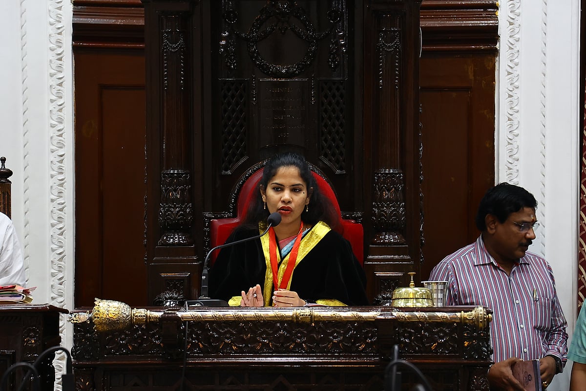 தொடர்ந்து 134-வது வார்டு பா.ஜ.க கவுன்சிலர் உமா ஆனந்தன் பேசத் தொடங்கினார். எடுத்த எடுப்பிலேயே ஆங்கிலத்தில் தனது உரையைத் தொடங்கி, அனைவரையும் ஆங்கிலத்தில் குறிப்பிட்டு `நமஸ்காரம்’ என்றவர், `ஆன்மிக அரசியல்தான் எல்லாவற்றுக்கும் காரணம்’ என்ற முத்துராமலிங்கத் தேவருக்கும், வல்லபாய் படேலுக்கும் பிறந்தநாள் வாழ்த்தைக் கூறினார். தொடர்ந்து தனது வார்டு பிரச்னைகளைப் பேசுவதற்கு பதிலாக, `What is our Duties and representation..’ என ஆரம்பித்து ஆங்கிலத்திலேயே பேசினார். அப்போது, சிலர் அவையைவிட்டு எழுந்து சென்றனர். உடனே துணை மேயர் மகேஸ்குமார் குறுக்கிட்டு, “உங்க பகுதி பிரச்னை, கோரிக்கையை சொல்லுங்க!” எனக் கூற, மீண்டும் ஆங்கிலத்துடன் தமிழும் கலந்து பேசினார். “சென்னை மாநகராட்சி நிர்வாகத்தில் வெளிப்படைத்தன்மை இல்லை, நிதித்துறை செயல்பாடுகள் மர்மமாக இருக்கிறது, சென்னை மாநகராட்சிக்கு வரும் டொனேஷன்களை இணையதளத்தில் பதிவேற்ற வேண்டும்” என குற்றம்சாட்டினார்.