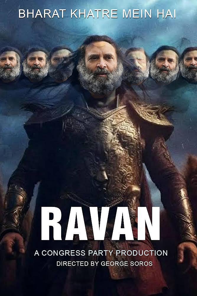 காங்கிரஸின் இத்தகைய செயல் பா.ஜ.க-வினரை எரிச்சலடையச் செய்யவே, அவர்களும் தங்கள் ட்விட்டர் எக்ஸ் பக்கத்தில், ராகுல் காந்தியை, `புது யுக இராவணன் வந்துவிட்டார். இவர் தீயவர், தர்மத்துக்கு எதிரானவர், ராமருக்கு எதிரானவர். பாரதத்தை அழிப்பதே இவரின் நோக்கம்’ என்று விமர்சித்து ராவணன்போல பத்து தலைகளை வைத்து, ராகுல் காந்தி புகைப்படத்தை நேற்று பதிவிட்டது.