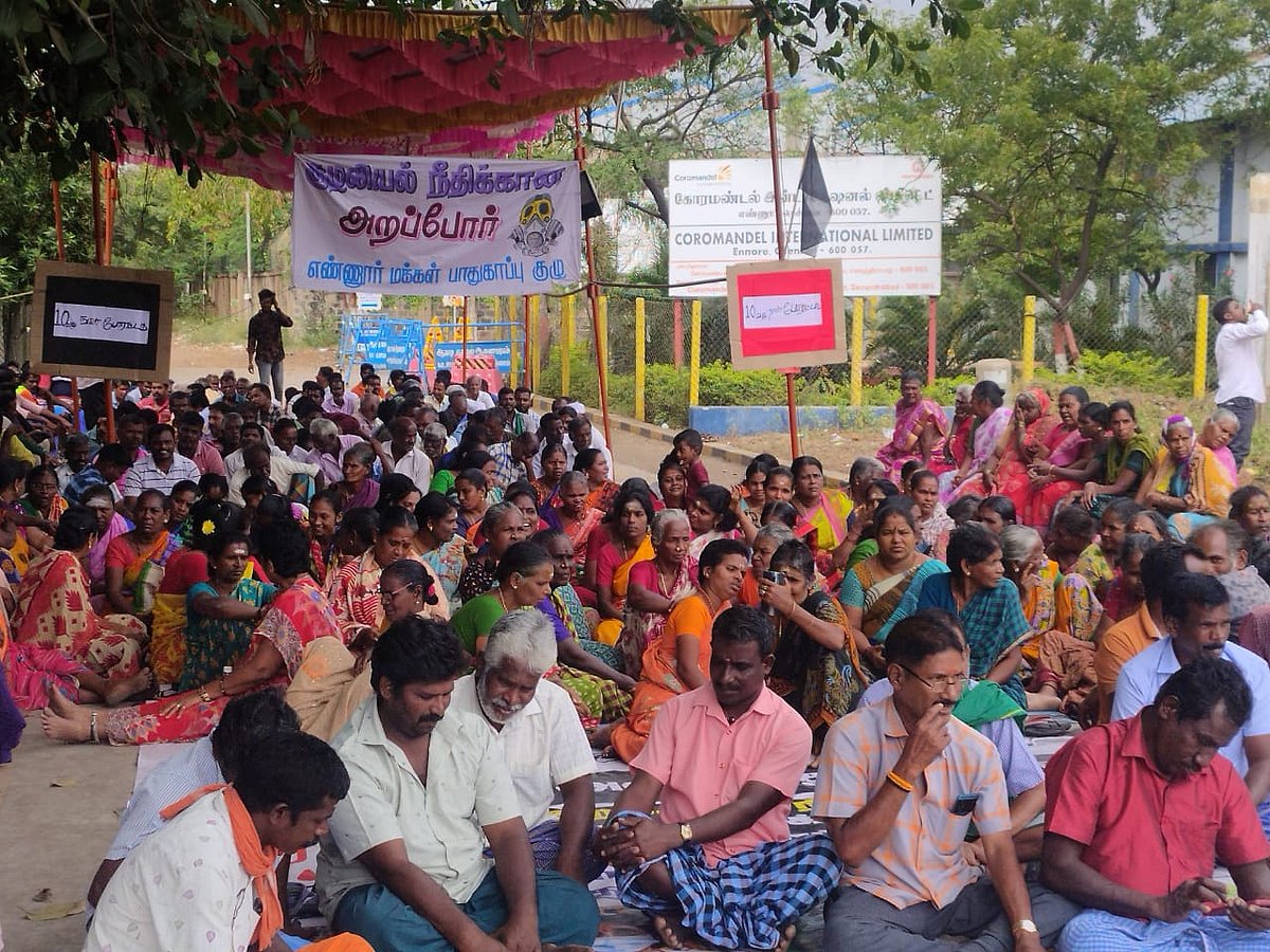 இந்த விவகாரத்தை தமிழ்நாடு மாசுக் கட்டுபாட்டு வாரியம் விசாரணை நடத்திய நிலையில், கோரமண்டல் ஆலையை தற்காலிகமாக மூட உத்தரவிட்டது தமிழ்நாடு அரசு. ஆனால், தற்காலிகமாக அல்ல, நிரந்தரமாக ஆலையை மூட வேண்டும் என்பதே எண்ணூர் கிராம மக்களின் கோரிக்கை. எண்ணூர் பெரியகுப்பத்திலுள்ள கோரமண்டல் ஆலை நுழைவுவாயிலில் டிசம்பர் 26-ம் தேதி தொடங்கிய போராட்டம், 10-வது நாளாகத் தொடர்கிறது.