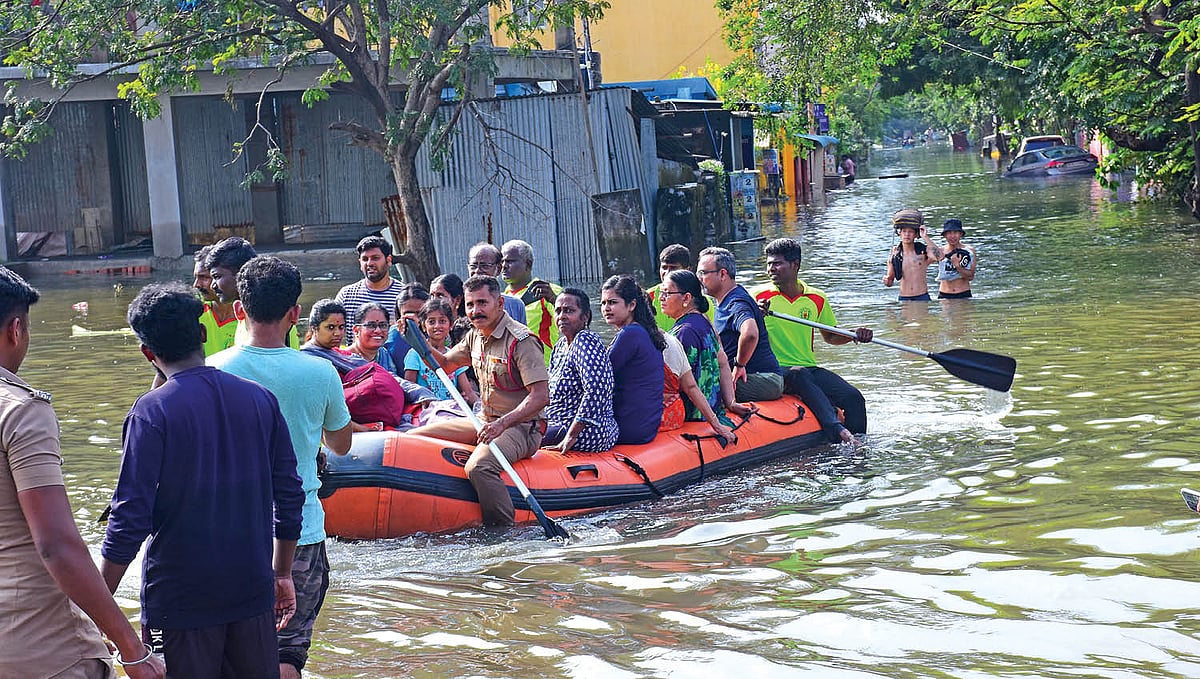டிசம்பர் முதல் வாரம் பெய்த கனமழை காரணமாக, சென்னையின் பல்வேறு பகுதிகளும் மழைநீர் சூழ்ந்து வெள்ளக்காடாகக் காட்சியளித்தது. அரசு இயந்திரம் முழுவதுமாக முடக்கிவிடப்பட்டிருந்தாலும் வெள்ள பாதிப்புகளில் சென்னை வாசிகள் சிக்கித் தவித்தனர். பெருமழை விட்ட பிறகும் தேங்கிய மழைநீர் வடிய மூன்று நாள்கள் ஆனது. குடியிருப்பு பகுதிக்குள் மழைநீர் புகுந்ததால் பொதுமக்கள் வீடுகளிலிருந்து வெளியேறி முகாம்களில் தங்கவைக்கப்பட்டனர்.