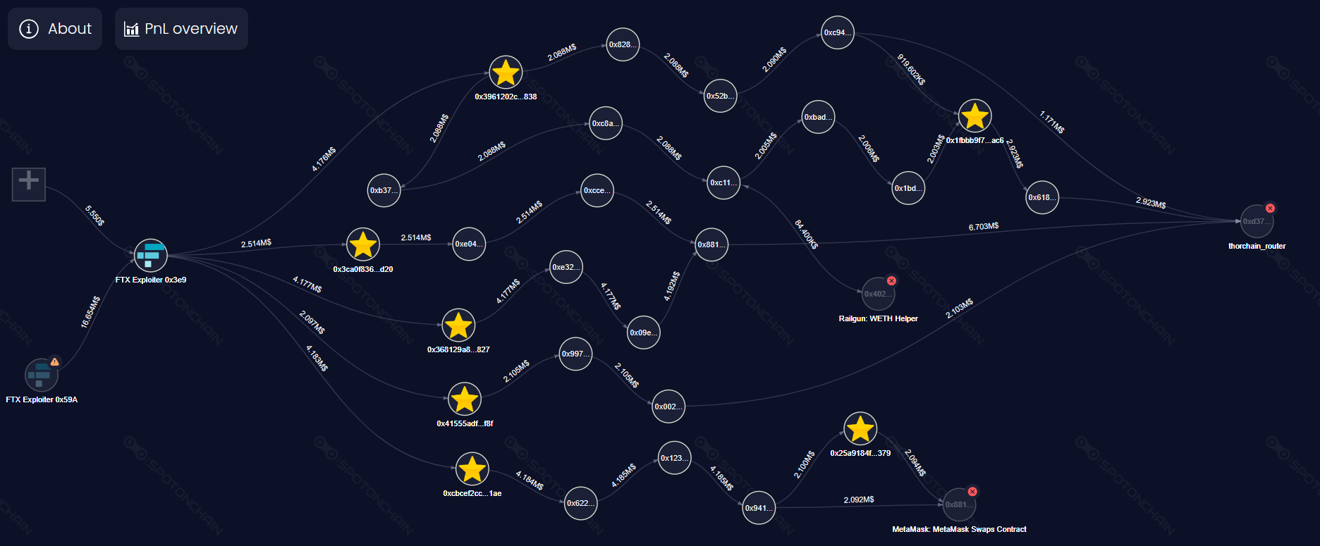 லாட்டில், 64,948 ETH ($108 மில்லியன்) தோர்செயின் ரூட்டர் மூலமாகவும், 52 ETH (மதிப்பு $84,000) ரெயில்கன் ஒப்பந்தத்திற்கும் மாற்றப்பட்டது. மீதமுள்ள 2,500 ETH ($4.19 மில்லியன்) பிட்காயினுக்கு (tBTC) மாற்றப்பட்டது.