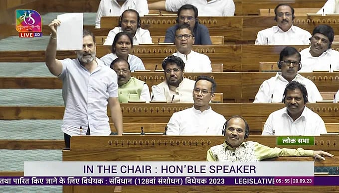 செப்டம்பர் 19: மகளிர் இட ஒதுக்கீடு மசோதா நாடாளுமன்றத்தில் தாக்கல் செய்யப்பட்டு நிறைவேற்றப்பட்டது.