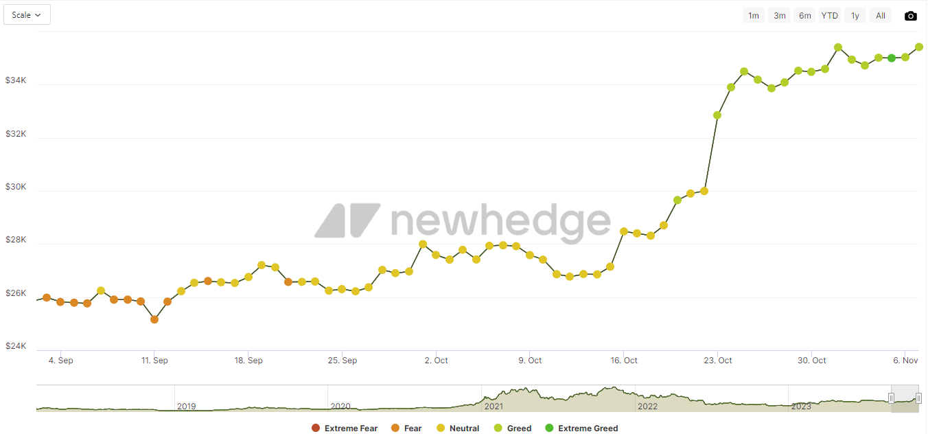 ஆல்ட்காயின் சந்தை செயல்திறன் முதலீட்டாளர் உணர்வில் முன்னேற்றத்துடன் ஒத்துப்போகிறது. சந்தை உணர்வின் ஒரு அளவுகோல் கிரிப்டோ பயம் மற்றும் பேராசை குறியீடு ஆகும். பயத்துடன் செப்டம்பர் துவங்கியதில் இருந்து, சந்தை அக்டோபர் 23 அன்று பேராசைக்கு மாறியது, மேலும் அது தலைகீழாக மாறவில்லை.