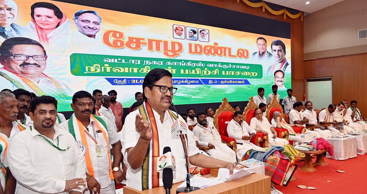 காங்கிரஸ் கட்சியின் சோழ மண்டல வட்டார, நகர நிர்வாகிகளுக்கான பயிற்சி பாசறைக் கூட்டம் கும்பகோணத்தில் நடந்தது. இதில் தமிழகத் தலைவர் கே.எஸ்.அழகிரி, முன்னாள் மத்திய அமைச்சர் மணிசங்கரய்யர், கர்நாடகா மாநில சுகாதாரத்துறை அமைச்சரும், தமிழக பொறுப்பாளருமான தினேஷ் குண்டு ராவ் உள்ளிட்ட பலர் கலந்துகொண்டனர்.