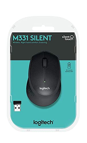 லாஜிடெக் M331 சைலண்ட் பிளஸ் வயர்லெஸ் மவுஸ் – 90% குறைவான கிளிக் சத்தத்துடன் அதே கிளிக் உணர்வை அனுபவிக்கவும், 2 வருட பேட்டரி ஆயுள், கணினிகள் மற்றும் மடிக்கணினிகளுக்கான பணிச்சூழலியல் வலது கை வடிவம், USB யூனிஃபையிங் ரிசீவர், கருப்பு