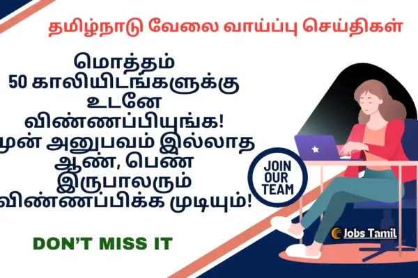TN Private Jobs in Chennai தமிழ்நாட்டின் தலைநகரான சென்னை மாவட்டத்தில் (Job Vacancy in Chennai) இயங்கி வரும் TVS Staffing Solution தற்போது காலியாக …