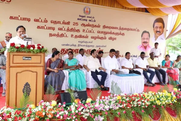 வேலூர் மாவட்டத்தில், ‘காட்பாடி வட்டம்’ தொடங்கி 25 ஆண்டுகள் நிறைவடைந்ததையொட்டி, இன்று நலத்திட்ட உதவிகள் வழங்கும் விழா நடைபெற்றது. தொகுதி எம்.எல்.ஏ-வும் நீர்வளத்துறை அமைச்சருமான துரைமுருகன் கலந்துகொண்டு, …