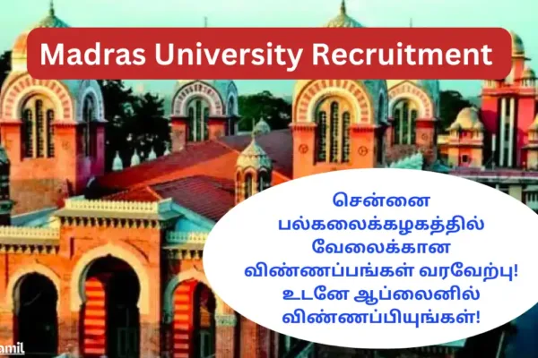 தமிழ்நாட்டில் சென்னையில் உள்ள சென்னை பல்கலைக்கழகம் வேலை வாய்ப்பிற்கான அறிவிப்பை தற்போது வெளியிட்டுள்ளது. ஆராய்ச்சி உதவியாளர் பதவியை நிரப்ப முடிவு செய்துள்ளது. அதில் ஒரு பணியிடம் மட்டும் …
