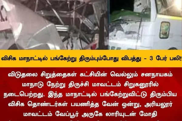 விசிக மாநாட்டில் பங்கேற்று திரும்பும் போது விபத்து! – 3 பேர் பலி முதல்வர் ஸ்டாலின் இன்று வெளிநாடு பயணம்! ஸ்டாலின் வெளிநாட்டு முதலீடுகளை ஈர்ப்பதற்காக முதல்வர் …