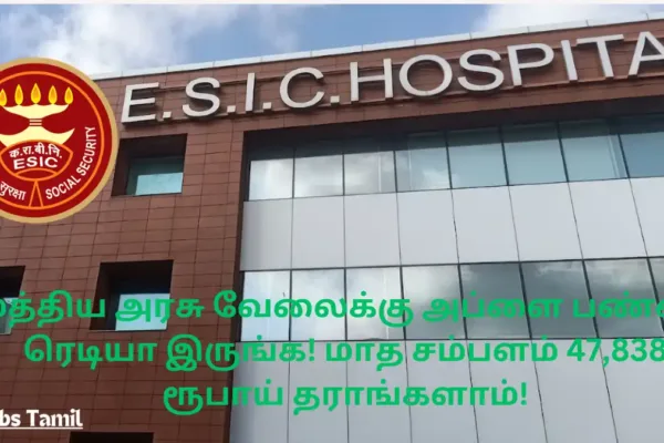 மத்திய அரசு வேலைக்கு அப்ளை பண்ண ரெடியா இருங்க! மாத சம்பளம் 47,838 ரூபாய் தராங்களாம்! 2 சென்னையில் உள்ள பணியாளர்கள் மாநில காப்பீட்டு நிறுவனம் (ESIC) …