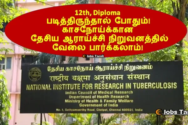 காசநோய்க்கான தேசிய ஆராய்ச்சி நிறுவனத்தில் மருத்துவ அலுவலர் வேலை மத்திய அரசாங்கத்தின் ஒன்றான (NIRT -National Institute for Research in Tuberculosis) காசநோய்க்கான தேசிய ஆராய்ச்சி …