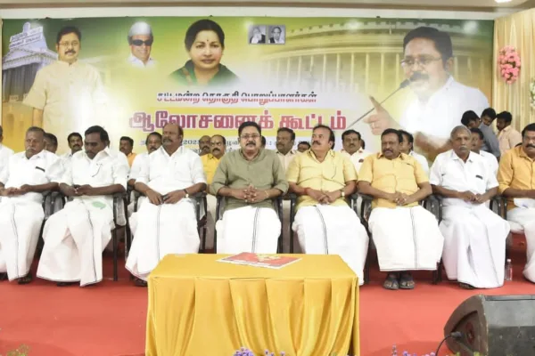 தஞ்சாவூர் மாரியம்மன் கோவில் பகுதியில் உள்ள தனியார் திருமண மண்டபம் ஒன்றில் அ.ம.மு.க பொதுச்செயலாளர் டி.டி.வி.தினகரன் தலைமையில் பத்து மாவட்டங்களில் உள்ள சட்டமன்ற பொறுப்பாளர்களுக்கான ஆலோசனைக் கூட்டம் …