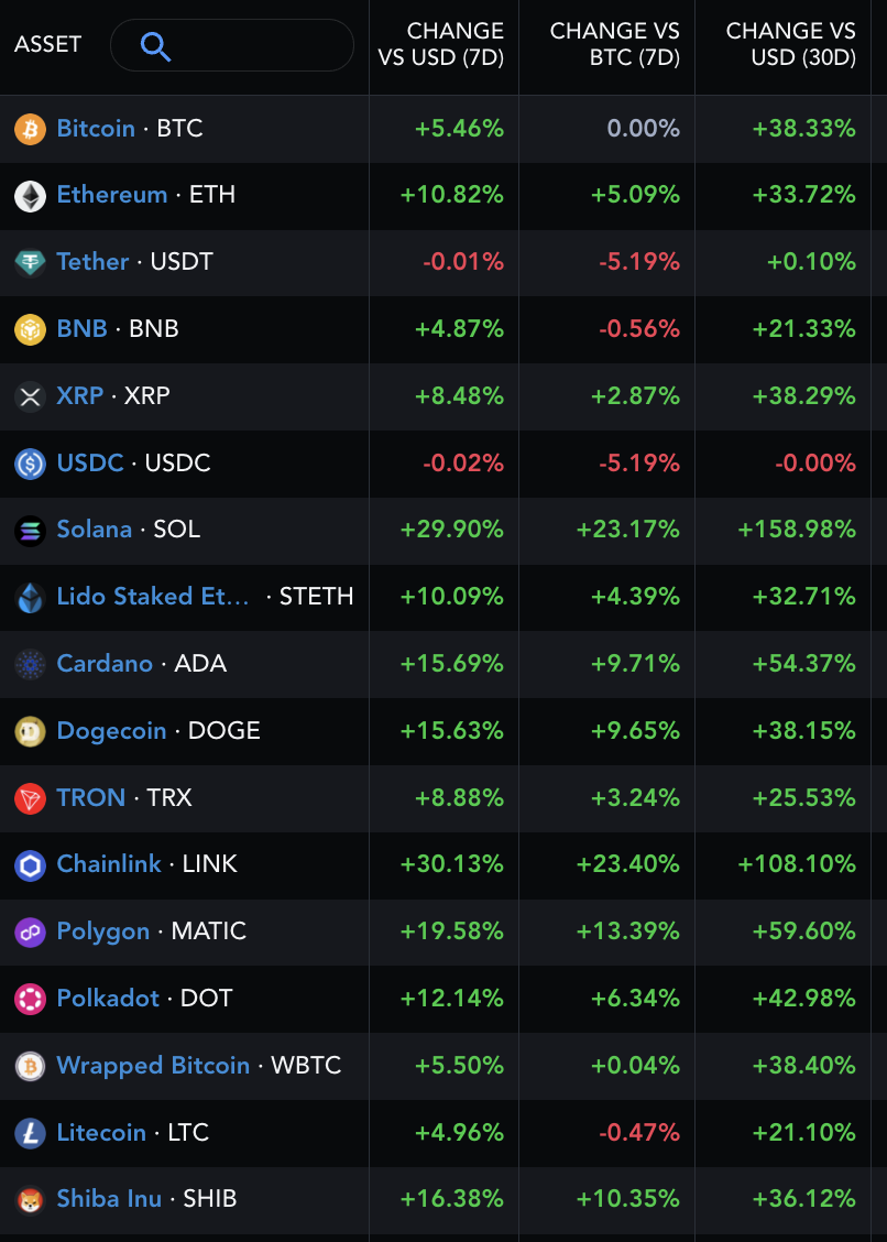 பிட்காயின் 38,000 டாலர்களை நோக்கி பிட்காயின் உயர்வு காரணமாக, கிரிப்டோகரன்சி விலைகளின் ஒட்டுமொத்த உயர்வுக்கான முதன்மைக் காரணங்களில் ஒன்று பிட்காயின் ஈடிஎஃப் மகிழ்ச்சியாகும். இருப்பினும், கடந்த 30 நாட்களில் சோலனா சிறப்பாகச் செயல்படுகிறார்.