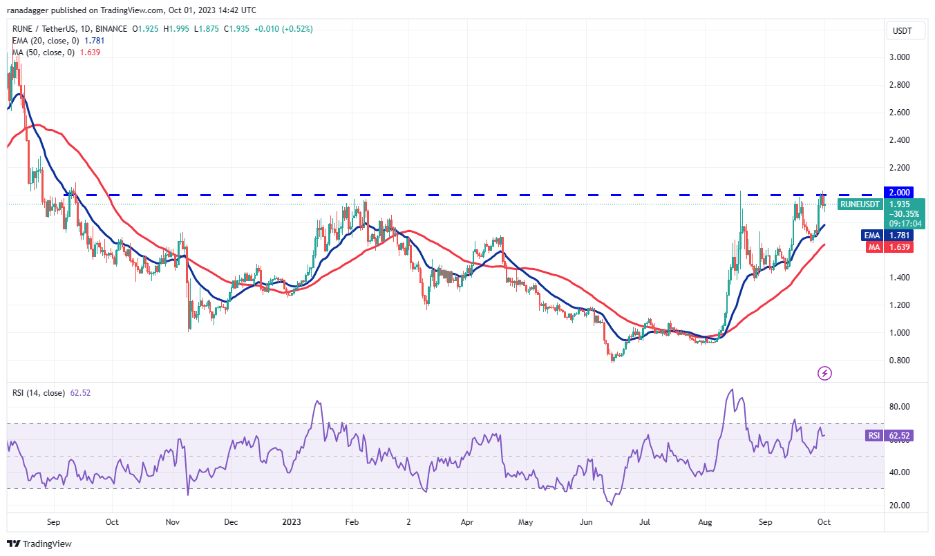 தற்போதைய நிலையில் இருந்து காளைகள் அதிக இடத்தை விட்டுக்கொடுக்கவில்லை என்றால், அது $2க்கு மேல் அணிவகுப்புக்கான வாய்ப்புகளை மேம்படுத்தும். அது நடந்தால், RUNE/USDT ஜோடி முதலில் $2.28 ஆகவும் பின்னர் $2.78 ஆகவும் உயரலாம்.
